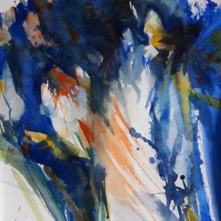 After retiring I studied watercolor with Frederick Wong and Frank O’Cain, watercolor and acrylic. I credit Frank for pushing me toward abstract watercolor.